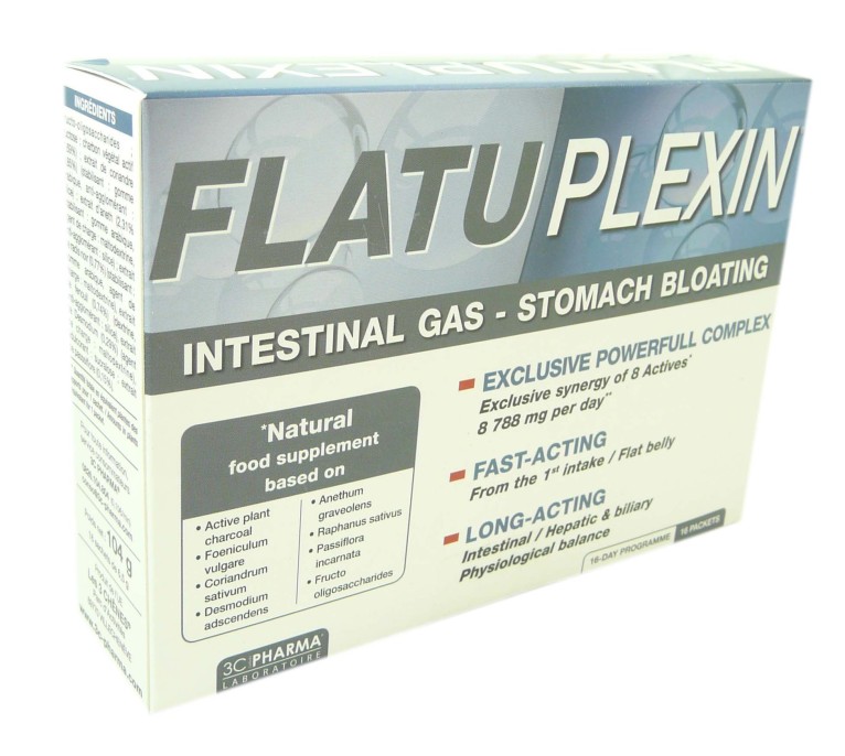 FLATU PLEXIN GAZ INTESTINAUX BALLONNEMENTS 3C PHARMA des laboratoires 3 Chênes est un complément alimentaire spécialement conçu pour contribuer au confort digestif grâce au charbon végétal. La formule y associe du fenouil qui contribue à soulager les inconforts digestifs tels que les ballonnements et est reconnu pour favoriser un bon transit intestinal ainsi que de la coriandre qui contribue à digérer les toxines et à maintenir l’équilibre normal de gaz dans le tube digestif.