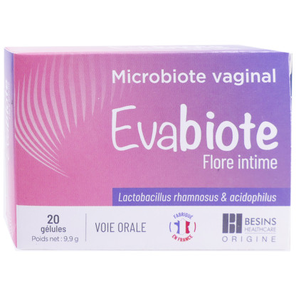 EVABIOTE FLORE INTIME MICROBIOTE VAGINAL 20 GELULES, en vente en ligne sur le site de votre parapharmacie à prix discount, est un complément alimentaire essentiel pour la flore intime perturbée par des infections vaginales, à la prise de certains antibiotiques,...