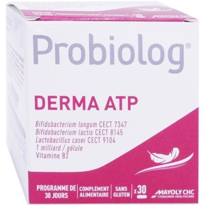 PROBIOLOG DERMA ATP des laboratoires Mayoly Spindler discount, le complément alimentaire conditionné sous forme de gélules disponible dans votre parapharmacie en ligne à prix discount.