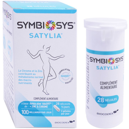 SYMBIOSIS SATYLIA est un complément alimentaire en gélules. Sa formule est composée d’une association de zinc, chrome, et d’une souche bactérienne unique : Hafnia alvei HA4597. Le zinc et le chrome sont traditionnellement utilisés pour participer au métabolisme des macro-nutriments (glucides, lipides). Son conditionnement sous forme de gélules gastro-résistantes DRCAPS, va aider à traverser le système digestif sans être détérioré en protégeant les ingrédients pour un effet optimal. DRCAPS® est une marque déposée par Lonza ou une de ses filiales.