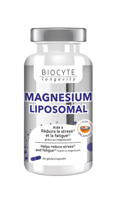 La gamme LONGEVITY de BIOCYTE à base d'ingrédients naturels et de technologies de micro encapsulation va répondre rapidement aux besoins du quotidien. Ce complément alimentaire sous forme de gélules, est composé de magnésium liposomal qui va aider à réduire le stress et la fatigue.