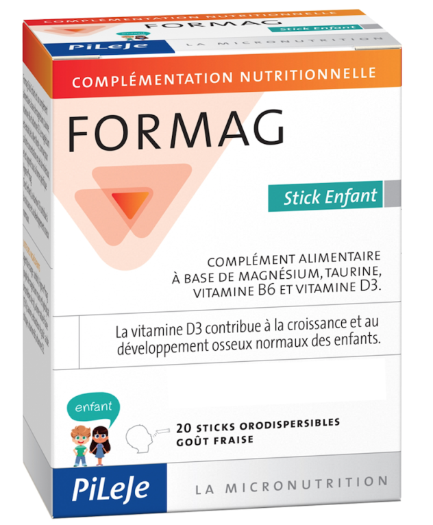 FORMAG Stick Enfant Pileje, un complément alimentaire à base de Magnésium, de vitamine B6 et D3 disponible dans votre parapharmacie en ligne à prix discount.
