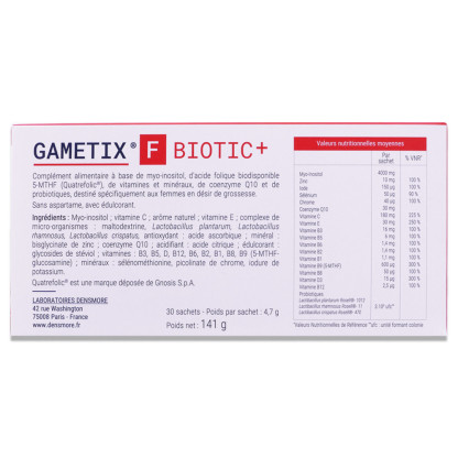 DENSMORE GAMETIX F BIOTIC+ 30 SACHETS est disponible en vente en ligne à prix discount sur Pharmashopdiscount.