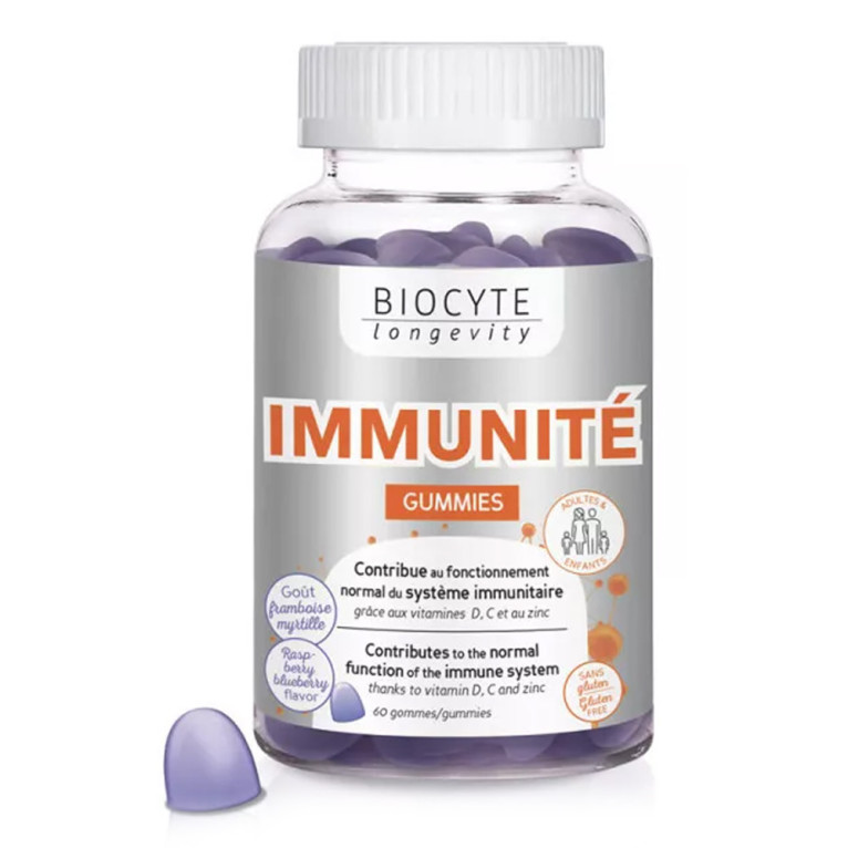Biocyte IMMUNITÉ Gummies est un complément alimentaire gommes à macher sans gluten pour adultes et enfants , au goût de framboise myrtille dans votre parapharmacie discount en ligne.