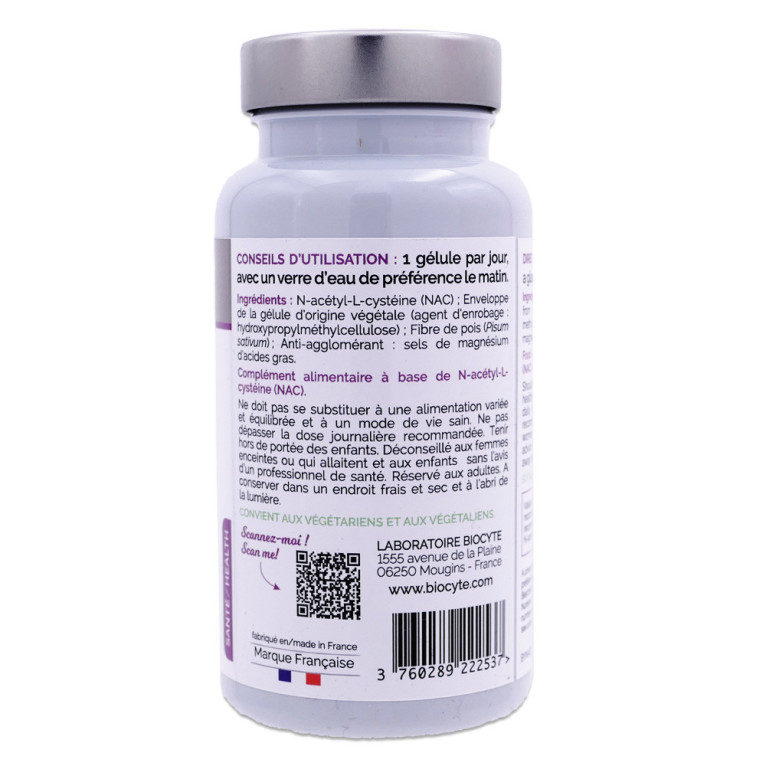 Complément alimentaire à base de N-acétyl-L-cystéine (NAC)Convient aux végétariens et végétaliens