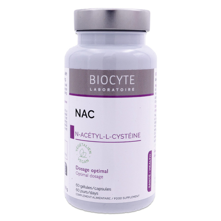 BIOCYTE NAC DOSAGE OPTIMAL 60 GÉLULES est un complément alimentaire en vente en ligne, sur le site de votre parapharmacie à prix discount, conçu pour offrir un apport optimal en nutriments essentiels.