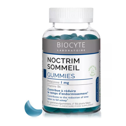 BIOCYTE créé en 2006 est un laboratoire qui conçoit des compléments nutritionnels innovants et de qualité grâce à un savoir-faire unique dans le soin de soi, et offre des gammes à visée capillaire, solaire, minceur, anti-âge et beauté de la peau. Le laboratoire BIOCYTE reconnu pour les compléments alimentaires minceur et beauté a créé des capsules capables d’aider les personnes stressées et les personnes ayant du mal à trouver le sommeil. NOCTRIM FORTE Gummies est un complément alimentaire conditionné sous forme de gummies au goût mûre formulé à base de Vitamine B6 qui participe au fonctionnement normal du système nerveux, et de Mélatonine qui aide à réduire le temps d’endormissement.