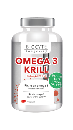 Oméga 3 Krill de BIOCYTE, le complément alimentaire conditionné sous la forme de capsules disponible dans votre parapharmacie en ligne à prix discount.