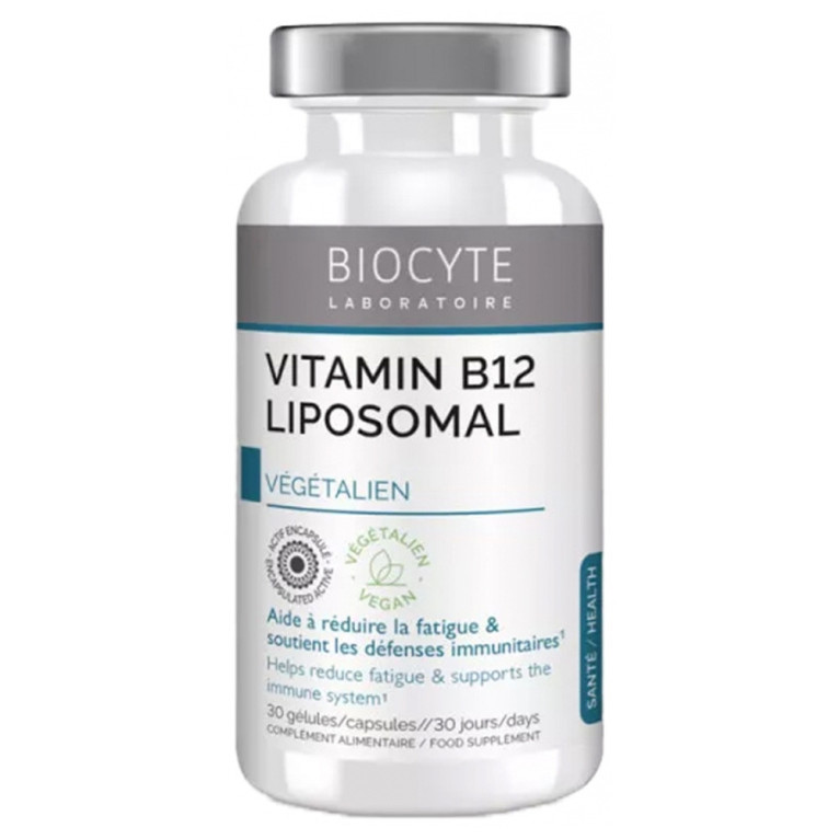 BIOCYTE VITAMINE B12 LIPOSOMAL 30 GELULES, en vente en ligne sur le site de votre parapharmacie à prix discount, est un complément alimentaire hautement dosé en vitamine B12 encapsulée dans des liposomes pour une meilleure absorption par l'organisme.