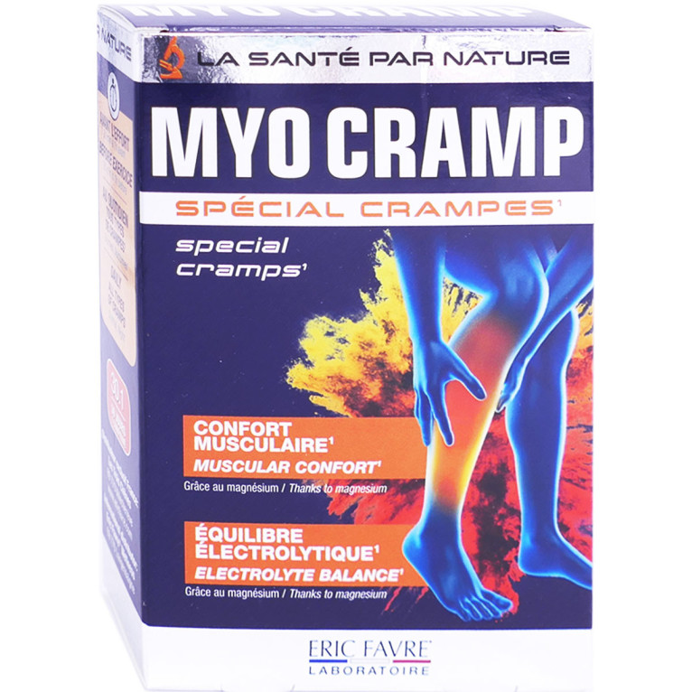 MYO CRAMP discount des laboratoires ERIC FAVRE, un complément alimentaire spécial crampes à base de Magnésium pour contribuer à favoriser le confort musculaire, dans votre parapharmacie en ligne à prix discount.