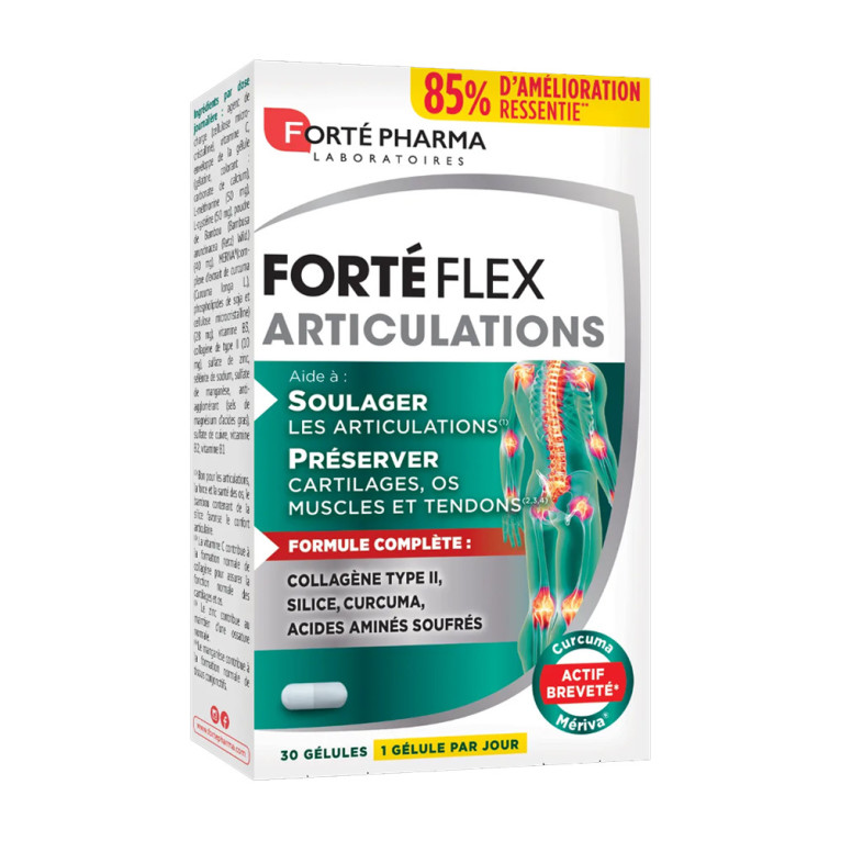 FORTE PHARMA FORTE FLEX ARTICULATIONS 30 GELULES, en vente en ligne sur le site de votre parapharmacie à prix discount, est un complément alimentaire conçu pour le soutien et le confort des articulations.