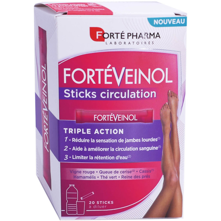 FortéVeinol Sticks circulation discount de FORTEPHARMA, la solution nature dans votre parapharmacie en ligne à prix discount, à base d'extraits de plantes.