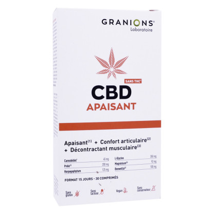 GRANIONS CBD APAISANT 30 COMPRIMÉS est disponible en vente en ligne sur le site de votre parapharmacie à prix discount.