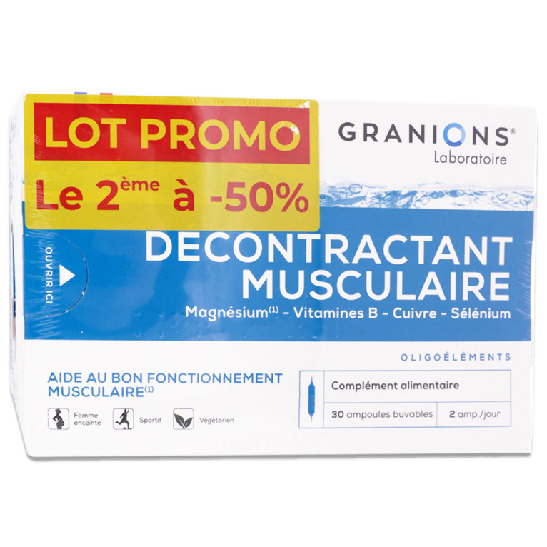 GRANIONS DECONTRACTANT MUSCULAIRE LOT DE 2X30 AMPOULES, le complément alimentaire disponible dans votre parapharmacie en ligne à prix discount.