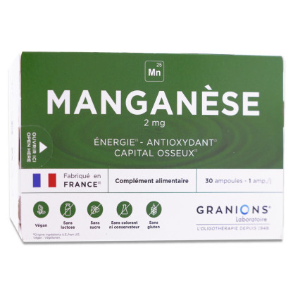 GRANIONS MANGANÈSE 2MG 30 AMPOULES est disponible en vente en ligne à prix discount sur Pharmashopdiscount.