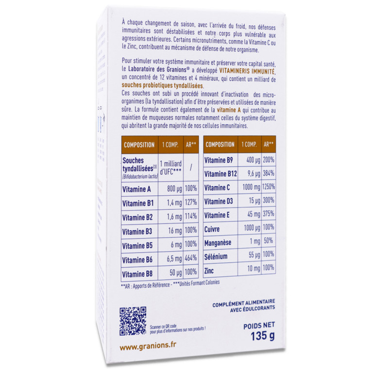 GRANIONS VITAMINERIS IMMUNITÉ 30 COMPRIMÉS est disponible en vente en ligne à prix discount sur Pharmashopdiscount.