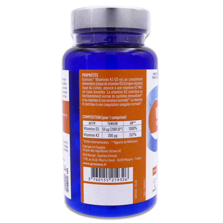 GRANIONS VITAMINES K2-D3 60 COMPRIMÉS est disponible en vente en ligne à prix discount sur Pharmashopdiscount.