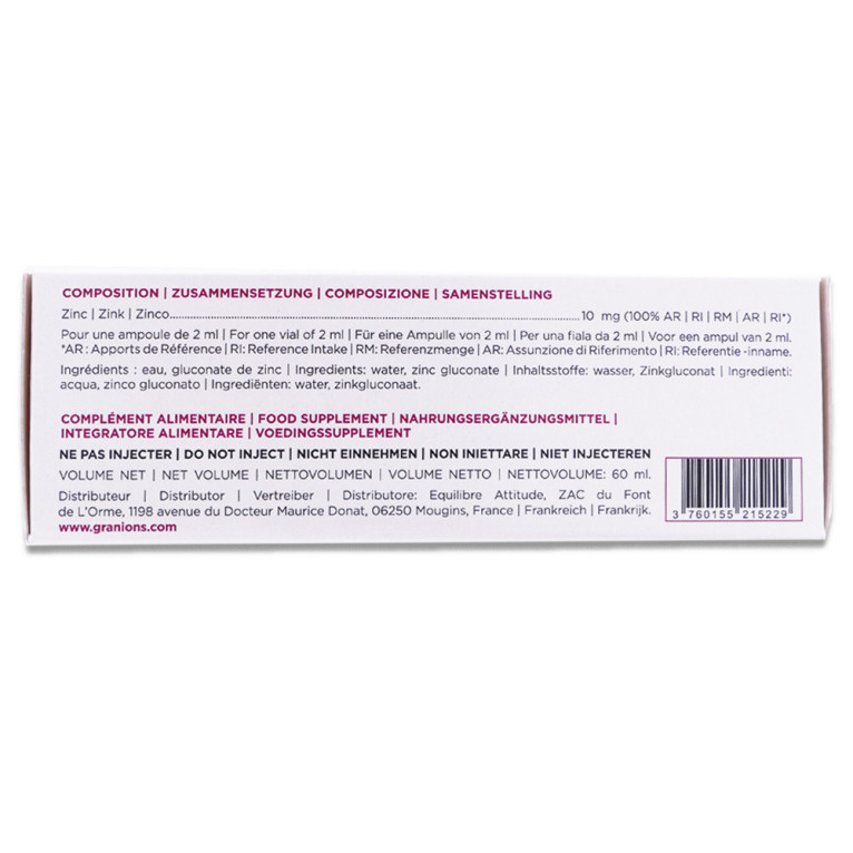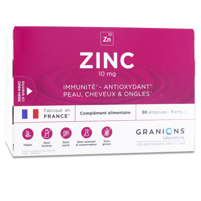 GRANIONS ZINC 10MG 30 AMPOULES est disponible en vente en ligne à prix discount sur Pharmashopdiscount.