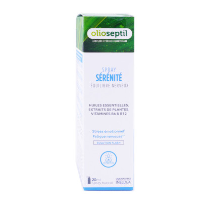 Spray Sérénité 20ml en vente en ligne sur le site de votre parapharmacie à prix discount. Découvrez ce spray aux huiles essentielles 100% pures et naturelles, extraits de plantes et vitamines, pour aider l’organisme à faire face au stress émotionnel passager et/ou à la fatigue nerveuse.