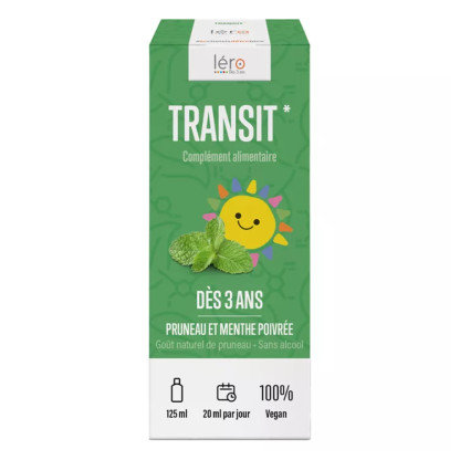 Transit discount du Laboratoire LERO, un complément alimentaire 100% Vegan conditionné sous forme de sirop disponible dans votre parapharmacie en ligne à prix discount. Dès 3 ans.