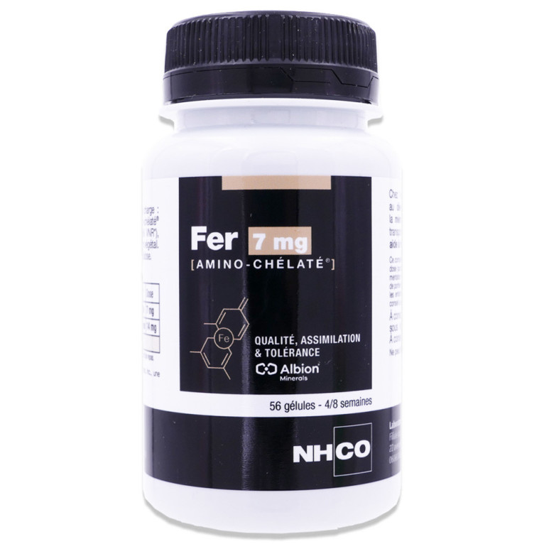 NHCO FER 7MG [AMINO-CHELATE], un complément alimentaire à base de Fer, un oligo-élément nécessaire à notre organisme dans votre parapharmacie en ligne.