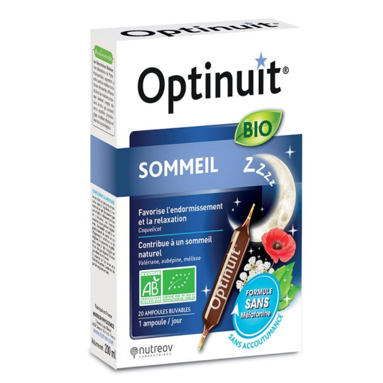 Pour 1 ampoule de 10 ml : Extrait aqueux de feuille de mélisse BIO 6000 mg Extrait aqueux de pétale de coquelicot BIO 1300 mg Extrait aqueux de sommité fleurie d’aubépine BIO 400 mg Extrait sec de racine de valériane BIO 120 mg