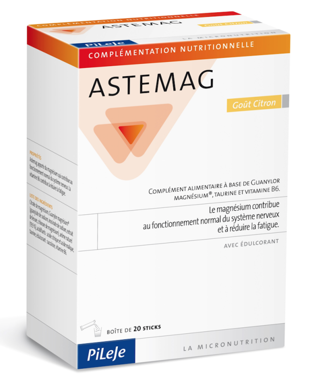 ASTEMAG de PILEJE à prix discount du laboratoire PILEJE, en vente dans votre parapharmacie en ligne discount, un complément alimentaire fabriqué à partir de Magnésium qui contribue au fonctionnement normal du système nerveux et à réduire la fatigue.