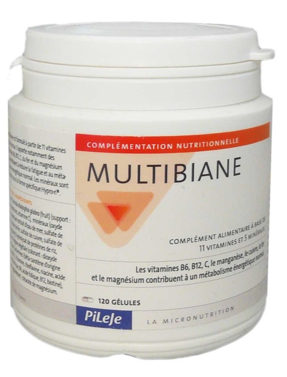 MULTIBIANE 120 gélules du laboratoire PILEJE à prix discount, un complément alimentaire conçu à partir de 11 vitamines et de 5 minéraux, en vente dans votre parapharmacie en ligne discount.
