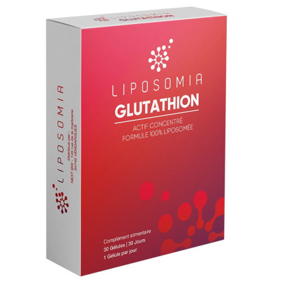 L LIPOSOMIA GLUTATHION conditionné sous forme de gélules, est un complément alimentaire dont la teneur en L-glutathion est dosée à 400 mg par gélule. Le Glutathion est un tripeptide présent naturellement dans l'organisme, composé de 3 acides aminés que sont l'acide glutamique, la cystéine et la glycine. Les actifs fabriqués par liposomes (micro-sphères) permettent un meilleur passage en évitant l’environnement intestinal et gastrique pour être absorbé directement dans les cellules de l’organisme.