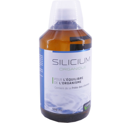 Le Silicium est un minéral présent dans l'organisme notamment dans les os, le cartilage, la peau, les cheveux, les ongles, les tendons et les ligaments. Le silicium est apporté par l'alimentation mais en petite quantité en raison de son absorption limitée. Avec le vieillissement, l'apport alimentaire de silicium diminue. SILICIUM ORGANIQUE est un complément alimentaire sous forme de solution buvable composé de silicium organique (apporte 25,5mg par jour) et de prêle des champs.
