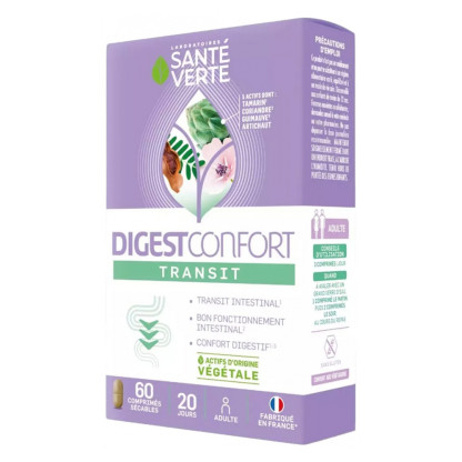 TRANSIT de SANTE VERTE discount, la qualité exclusivement distribuée en pharmacie, dans un complément alimentaire à base d’extraits de plantes, dans votre parapharmacie à prix discount. Adultes et adolescents (+ de 12 ans).