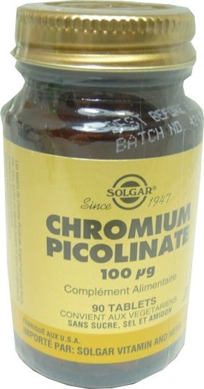 CHROME PICOLINATE de SOLGAR fournissant 100 microgrammes de Chrome élémentaire est un complément alimentaire à base d’une formule de Chrome qui va permettre une haute assimilation. Le Chrome participe au maintien d'une glycémie normale. CHROME PICOLINATE de SOLGAR convient aux végétariens et aux végétaliens et est garanti sans sucre ni sel et sans gluten.