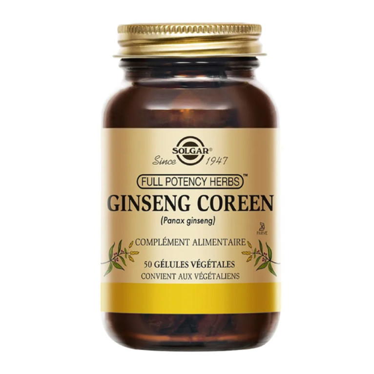 GINSENG CORÉEN de SOLGAR à prix discount, la qualité SOLGAR en gélules dans votre parapharmacie en ligne à prix discount, le complément alimentaire composé de Ginseng Coréen qui aide à soutenir la vitalité et à se sentir plus énergique.