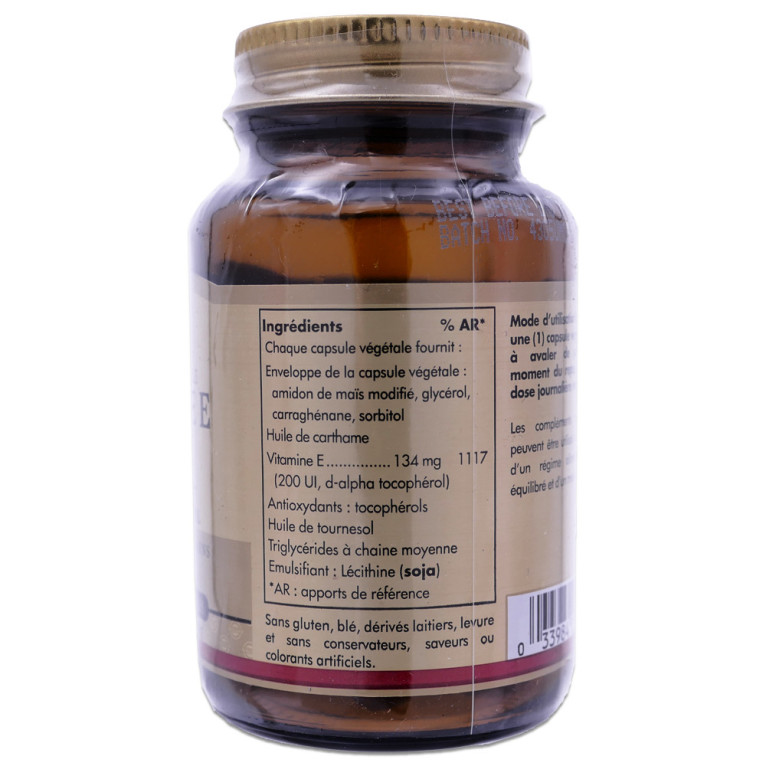Le laboratoire Solgar, reconnu pour son engagement envers la qualité et l'innovation, propose une vitamine E sous forme de D-alpha-tocophérol naturel.