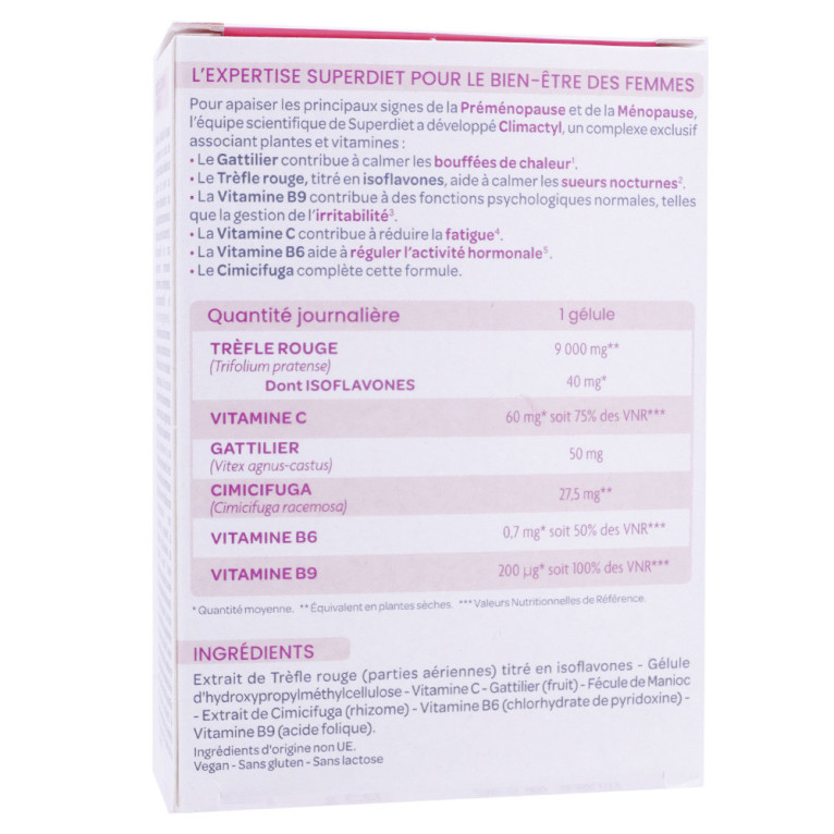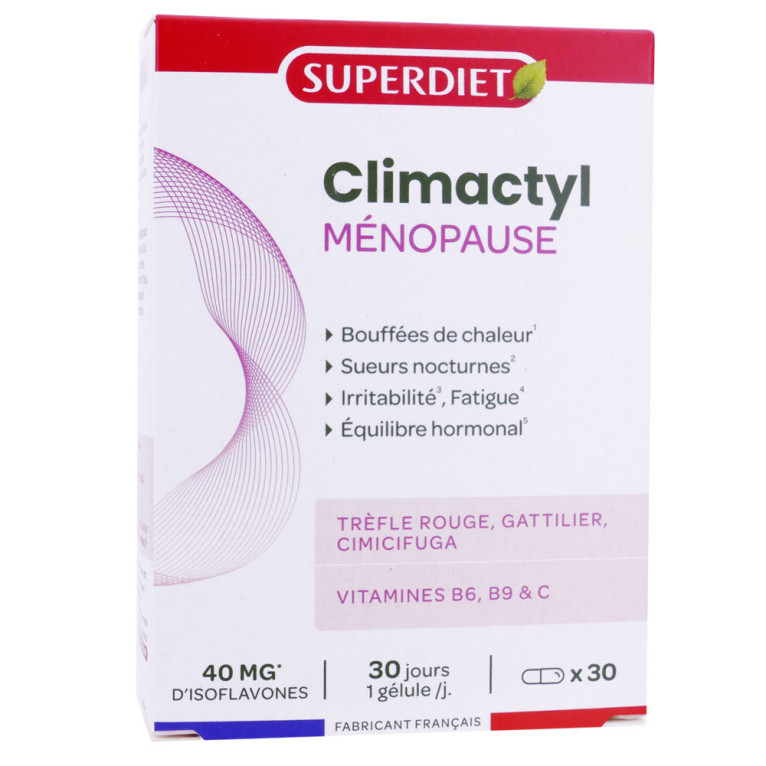 SUPERDIET CLIMACTYL MENOPAUSE 30 GELULES est disponible en vente en ligne à prix discount sur Pharmashopdiscount.