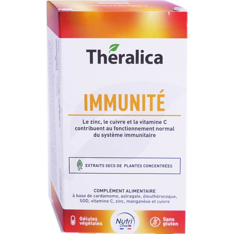 THERALICA IMMUNITÉ des Laboratoires THERAGREEN le complément alimentaire à un prix discount aux extraits secs de plantes concentrés, à la vitamine C et minéraux Zinc et cuivre qui contribuent au fonctionnement normal du système immunitaire, dans votre parapharmacie en ligne discount.