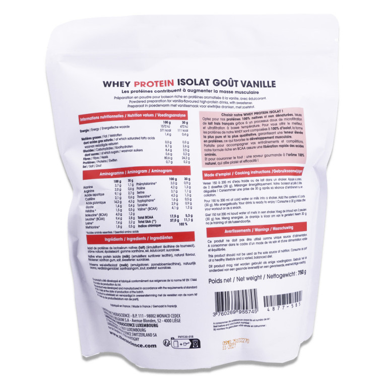 THERASCIENCE WHEY ISOLATE VANILLE 750G est disponible en vente en ligne à prix discount sur Pharmashopdiscount.