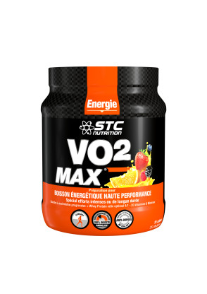 VO2 MAX de STC Nutrition est une préparation énergétique glucidique enrichie en vitamines A-E-C-B1-B2-PP-B5-B6-B8-B9-B12, dont l’objectif est d’augmenter les réserves énergétiques pendant l’entrainement et aider à maintenir les performances au cours d’une séance d’endurance. Elle favorise l’hydratation longue durée tout en fournissant les minéraux et les vitamines nécessaires au bon métabolisme. Produit s’intégrant dans une démarche globale obtenu par un programme alimentaire et un entrainement adapté.