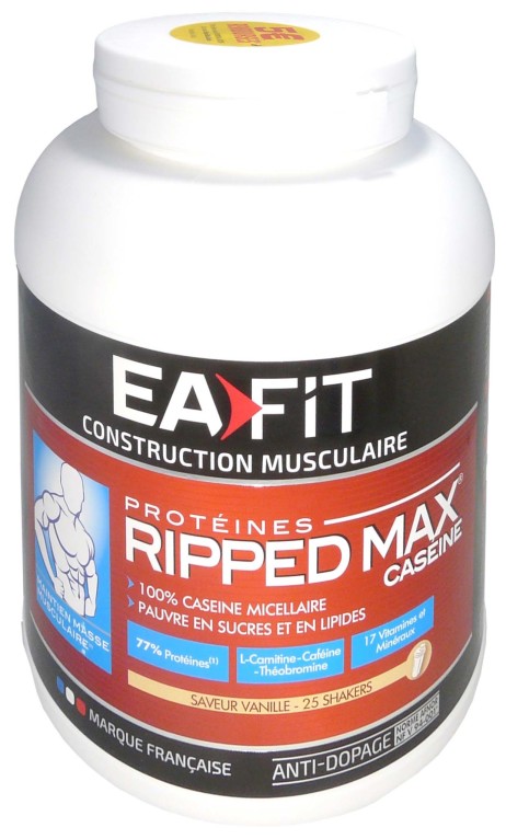 Ripped Max Caséine Maintien Masse Musculaire d’EAFIT Construction Musculaire, le complément alimentaire au goût vanille, en poudre à diluer, à base de vitamines dans votre parapharmacie en ligne à prix discount.