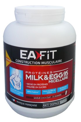 Milk&Egg Micellaire 95 d’EAFIT Construction Musculaire, détient une faible teneur en matières grasses et en sucres.