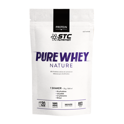 PURE WHEY de STC NUTRITION, le complément spécifique qui apporte des protéines, pour augmenter l’apport en protéines et le maintien de la masse musculaire chez les personnes sportives. Goût neutre