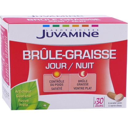 Brûle Graisse Jour/Nuit de JUVAMINE discount, le complément alimentaire minceur sous forme de comprimés dans votre parapharmacie en ligne à prix discount, conçu pour stimuler la perte de poids de jour comme de nuit.