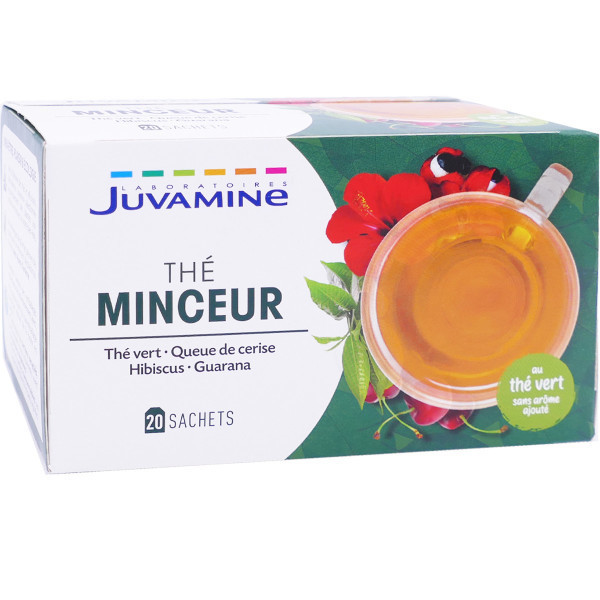 Le laboratoire JUVAMINE du groupe Juva Santé, conçoit des compléments alimentaires, infusions, vitamines,… pour le bien-être au quotidien de toute la famille (tonus, bio, minceur,…) Le Thé Minceur de Juvamine est un thé conditionné en sachet à infuser à base de Thé vert, de Guarana, de Queues de Cerise et de Fleurs d’hibiscus pour favoriser la combustion des graisses et aider à la perte de poids dans le cadre d’un régime minceur. Les extraits de thé vert et le Guarana vont permettre de brûler les graisses de réserve et participer au métabolisme naturel des graisses tout en agissant sur la baisse d’énergie, la queue de cerise va contribuer à éliminer l’eau en excès et drainer les tissus engorgés, et l’hibiscus complète la formule pour agir sur le tonus et la vitalité. Jour après jour la taille s'affine, et la perte de poids est visible.