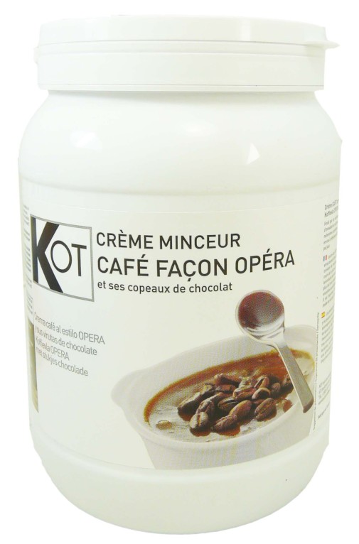 Le laboratoire KOT a été créé pour accompagner les personnes en surpoids dans leur démarche minceur en réconciliant nutrition équilibrée et plaisir. Ainsi la marque propose une méthode minceur incluant des produits gourmands : crêpes, pizzas, biscuits…, associés à des conseils nutritionnels personnalisés. La gamme des crèmes minceur dessert KOT est constituée de crèmes hyperprotéinées, sources de fibres, hypocaloriques, appauvries en glucides et lipides, aux délicieuses saveurs pour faciliter la perte de poids en toute gourmandise. La crème façon opéra et ses copeaux de chocolat de KOT apporte seulement 67 calories par dosette, 0,6% de matière grasses et 90% de glucides en moins qu’une autre crème dessert. Peut s’utiliser en phase intensive ou en phase progressive du régime KOT.