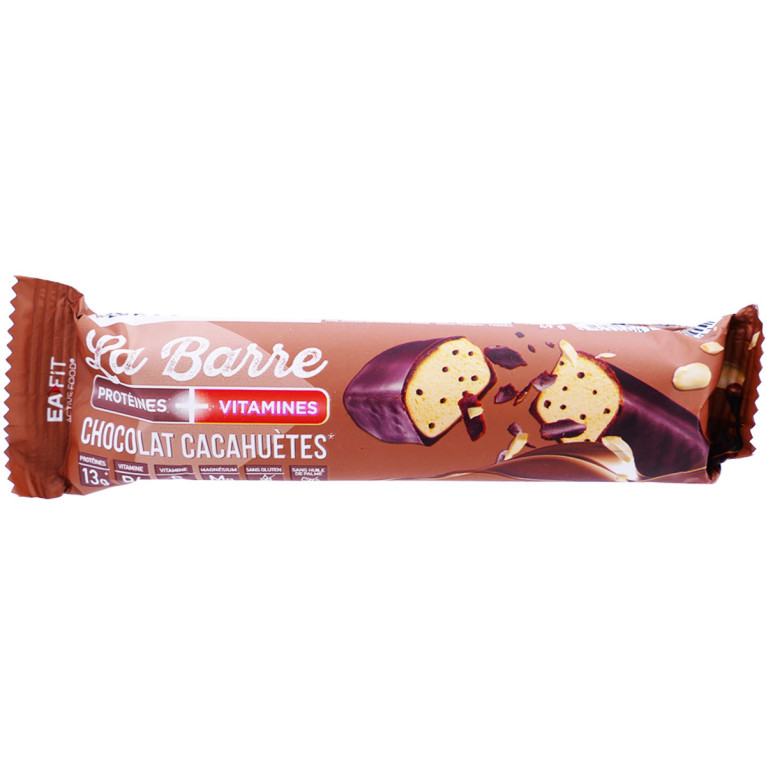 La Barre Protéine + Vitamines Goût Chocolat & Cacahuètes discount d’EAFIT, une barre gourmande riche en protéines et vitamines, dans votre parapharmacie en ligne à prix discount pour maintenir une pause gourmande sans regrets !