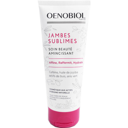 Jambes Sublimes Soin beauté Amincissant d’OENOBIOL est un soin aux actifs 100% naturels, spécialement conçu pour réduire les graisses stockées et remodeler visiblement les jambes. Sa formule est composée de caféine naturelle, et d’escine pour déloger les graisses stockées, et drainer afin d’agir sur la cellulite aqueuse. Ce soin 100% d’origine naturelle contient également des huiles végétales (jojoba et germe de blé) pour embellir la peau en agissant sur la protection, l’hydratation, l’élasticité et la souplesse de la peau. Sa texture douce et légère parfumera la peau par des notes fraîches. Résultat : les jambes sont plus fermes, plus fines et plus douces pour une cellulite qui diminue visiblement. Testé sous contrôle dermatologique