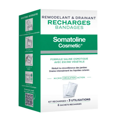 SOMATOLINE COSMETIC RECHARGES BANDAGES REMODELANT & DRAINANT6 SACHETS