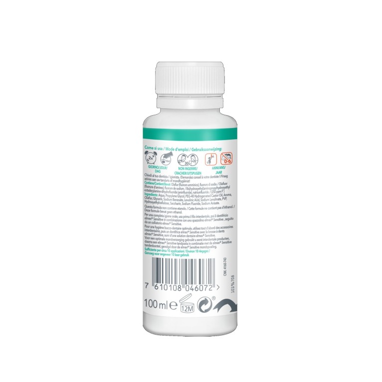 Le laboratoire ELMEX a conçu des produits d’hygiène dentaires reconnus par des dentistes pour des soins d’hygiène bucco-dentaire, blancheur des dents, prévention caries,… Le bain de bouche ELMEX Sensitive permet de nettoyer les endroits où une brosse à dents ne peut pas aller, de protéger l’émail des dents de la sensibilité et de l’apparition de caries du collet dentaire. Composé de fluorure d’amine Olafluor, il forme une couche protectrice sur l’émail, nettoie, renforce les dents et lutte contre la formation de caries du collet. Les dents sont plus résistantes et moins sensibles en complément d’un brossage des dents au quotidien grâce à ce bain de bouche au goût agréable. Sans éthanol. Sans alcool.