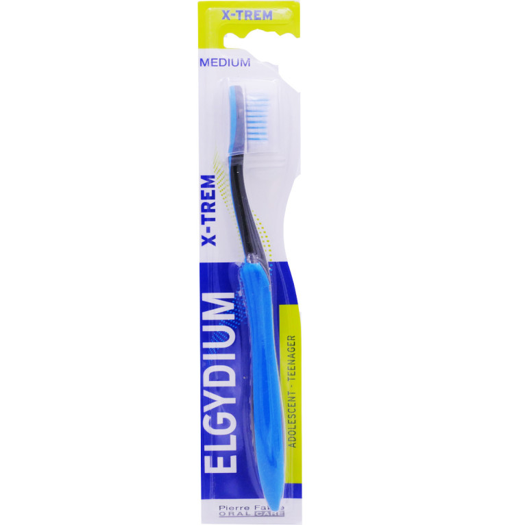 Brosse à dents Médium X TREM discount d'ELGYDIUM la solution innovante dans votre parapharmacie en ligne, pour nettoyer efficacement et tout en douceur les dents et les gencives des adolescents.