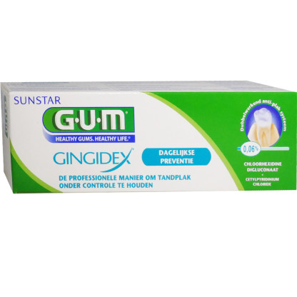 GUM Sunstar, dont le nom évoque le soleil (sun) et les étoiles (stars) puisqu’on se lave les dents au lever du jour et à la tombée de la nuit, développe depuis près d’un siècle des produits de soins buccaux et dentaires révolutionnaires de très grande qualité offrant une réponse adaptée à tous les besoins : brosses à dent, soins inter-dentaires, fils dentaires... La gamme GUM gencives propose des produits spécialement conçus pour maintenir des gencives saines et en bonne santé. Le dentifrice GUM Gingidex nettoie tout en douceur les dents pour favoriser l’élimination de la plaque dentaire, prévenir la sensibilité des gencives notamment en cas de soins orthodontiques, prothétiques ou implantologiques, et apaiser les gencives sensibles en complément du brossage quotidien. Sa formule associe du Digluconate de Chlorhexidine à 0,06% et du Chlorure de Cétylpyridinium à 0,05% pour réduire l'inflammation des gencives ainsi que les saignements gingivaux et favoriser la réduction de la plaque dentaire en neutralisant les toxines afin de renforcer les dents. L’aloe vera, la pro-vitamine B5, la vitamine E et le fluor, vont renforcer l’émail dentaire, soulager les gencives sensibles ou irritées et les rendre plus fortes.
